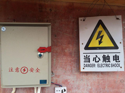 4、施工現場布線采用TN-S三相五線制,三級配電、兩級保護,做到一機一閘一箱一漏,定期進行漏電動作參數測試,以确保用電安全。